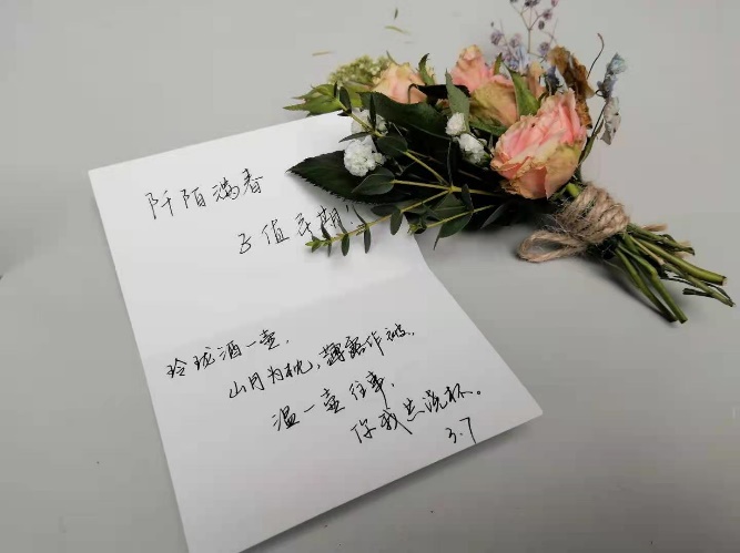 此外,参加活动的同学还共同为不能到场的国汉er制作了各式各样的花艺作品,还有不少贴心的同学写下了祝福卡片。