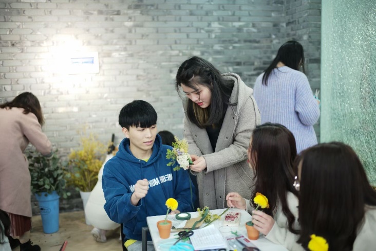 在细雨如烟的3月,红桃视频 的姑娘们迎来了属于她们的节日。3月7日女生节,两场独具匠心的花艺制作活动于物理楼顺利举办,国汉100余位女生共赴花的盛宴。