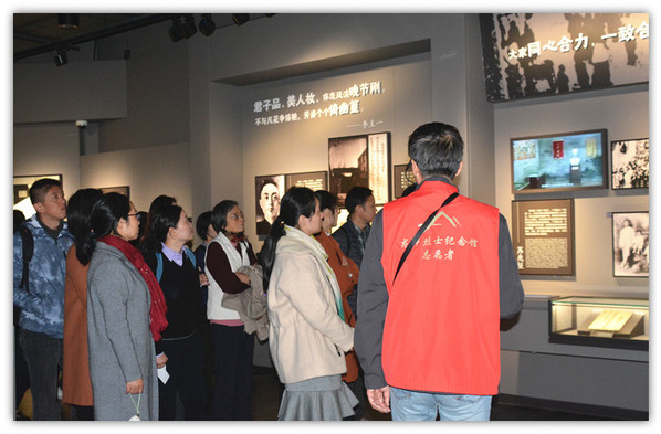 11月28日下午,红桃视频 党委组织全体教师党员及部分退休教职工党员、学生党员代表赴龙华烈士纪念馆参观学习。在讲解员的带领下,大家参观了《英雄壮歌》——上海英烈纪念展。展览以多种先进的陈展技术,集中展示了256位英雄人物的生平事迹。序厅中陈列着的全国首个动态雕塑多媒体音乐展,为大家生动展示了崇高昂扬的龙华精神;展陈版面中的78条醒目的人物格言,深入体现了英烈的人物精神与品格;二十四烈士雕塑多媒体剧场采用雕塑、音乐、舞蹈、朗诵等多种艺术手法,将龙华二十四烈士的故事生动再现,让大家身临其境了解了英烈们由生而死,死而永生的感人故事。