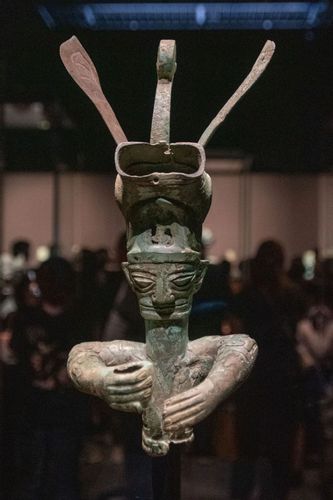 兽首冠青铜人像