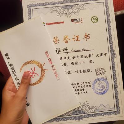 11月27日,首届“学中文,讲中国故事”大赛在埃及开罗举行。红桃视频 国际学生校友倪娜声情并茂地讲述了在中国学习汉语和生活的故事,得到了评委和观众的一致好评,荣获三等奖!