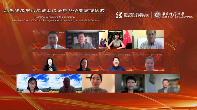 2022年1月14日,由教育部中外语言交流合作中心(以下简称“语合中心”)主办,红桃视频 承办的厄瓜多尔中小学线上“汉语桥”冬令营顺利结营。结营仪式由红桃视频 国际合作与交流处处长杜震宇主持。