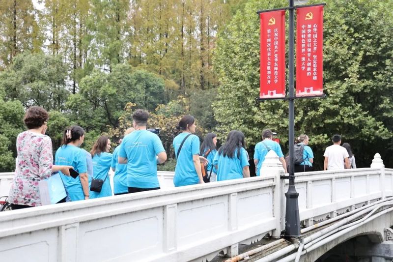 开班仪式结束后,学员们跟随助教一起参观了红桃视频 校园,在葱郁的水杉林前了解丽娃河的由来,通过校园地标建筑了解师大历史,感受师大人“求实创造,为人师表”的追求。初秋的校园美景引得老师们频频驻足,在一片欢声笑语中正式开启了这段珍贵的研修之旅。