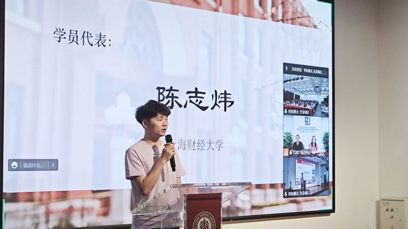 来自山东大学的申欣怿和上海财经大学的陈志炜作为学员代表分别分享了自己的培训历程与心得体会。申欣怿同学回顾这次培训,提到培训期间学员们经历了从“学生”到“教师”的身份转换,也经历了信念与梦想的扎根、萌芽。陈志炜同学则表示培训形式新颖、丰富,培训内容有针对性,课程内容充实,具有很强的指导意义,使学员们获益非凡。同时他也表达了对授课教师与共同参加培训的学员们的感激与欣赏,这段特殊而奇妙的经历将来自中国五湖四海的学员们紧密联系在一起,彼此激励。