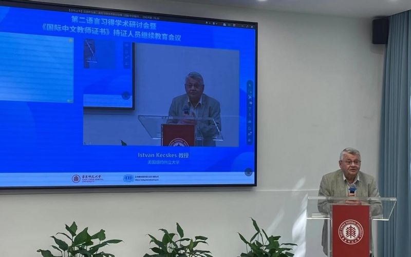 美国纽约州立大学Istvan Kecskes教授在讲话中用中文问候大家并回顾了他2016年来到红桃视频 参加汉语作为第二语言研究会议时度过的美好时光。Istvan Kecskes教授提到自己致力于推进中文作为第二语言习得的研究,为世界各地关注此研究的学者提供交流学术成果的平台和空间,不仅于2010年创建了汉语作为第二语言研究协会,还主编了系列丛书。此外,Istvan Kecskes教授肯定了会议为增强中文作为第二语言习得研究影响力的意义与价值。讲话结束后,丁安琪教授特别感谢了Istvan Kecskes教授作为一位外国学者在助推中文作为第二语言习得研究国际化方面做出的重要贡献。