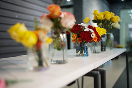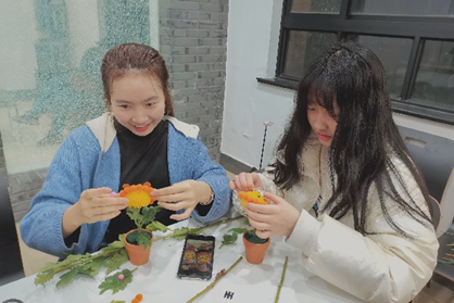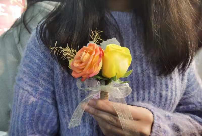活动现场鲜花种类丰富,供同学们自由挑选。同学们在准备好的花丛中剪下自己心仪的花枝,准备妥当后,陆续开始了自己独特的花艺创作之旅~
