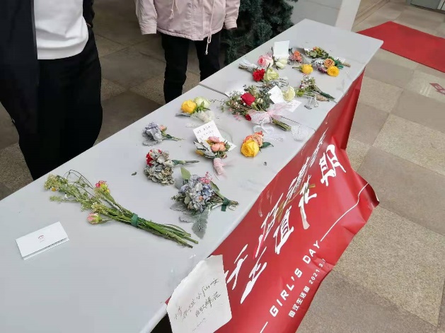 3月8日上午,学生会生活部将各式各样制作精美的花艺作品在教学楼展出,给同学们和老师们送去一份心意满满的惊喜。所有花艺作品派送完毕后,本次女生节活动就顺利结束啦~