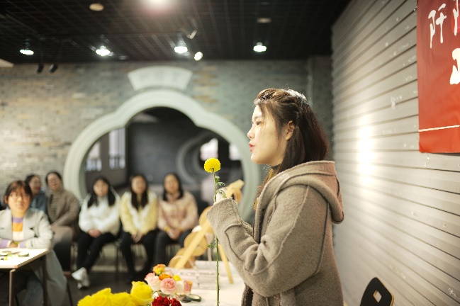 活动正式开始,主持人为大家送上女生节祝福,之后由花艺老师为大家介绍工具和花材。