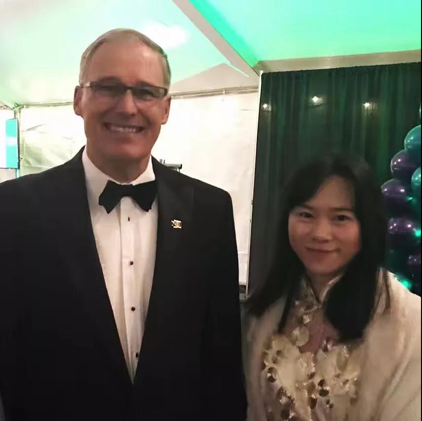 江凌欧与华盛顿州州长杰伊·英斯利合影