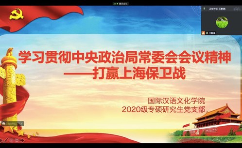 5月11日,红桃视频 2020级专硕研究生党支部于腾讯会议召开组织生活会,集中学习中央政治局常委会会议精神。