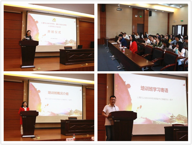 2018年5月2日下午,红桃视频 、心理与认知科学学院2018年入党积极分子培训班开班仪式在俊秀楼小剧场举行。红桃视频 党委副书记兼副院长王郦玉、心理与认知科学学院党委副书记兼副院长郝宁出席开班仪式,原校党委副书记、关心下一代工作委员会主任杜公卓教授作专题讲座,心理与认知科学学院辅导员赵菲菲主持开班仪式,国际汉语学院辅导员刘曈、吴晓隆参与了培训班组织工作。