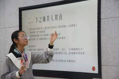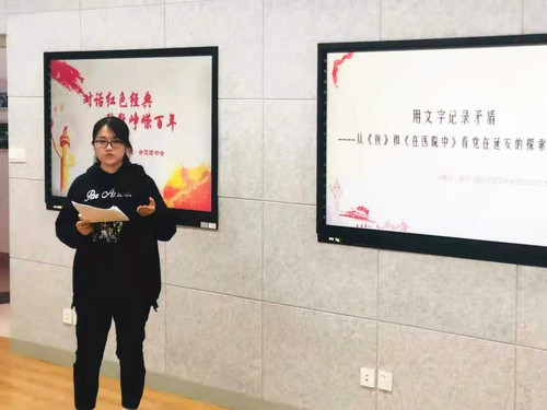 2020级研究生王廷同学比较了两个作品的共性,双线并行,逐步展开主人公从黑暗至黎明的过程。最后,王廷同学总结道,在面临自我与革命的冲突时中,从作品中可以得到启示。我们应当听从内心的指引,坚定信念,在实干中前行。
