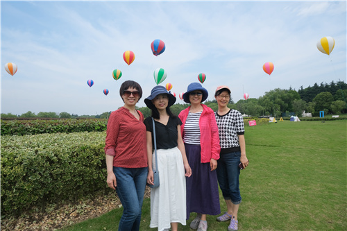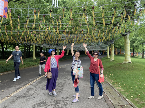 到达景区,大家兴致勃勃地游览了湖滨广场、月亮湾、渔人码头、智慧大道、天空之境、风铃大道等景点。园内烟波浩淼的湖水、苍翠欲滴的植被、五彩缤纷的热气球、随风飘摇的万只风铃以及绵延道路两侧的中外名人雕塑等,创意精妙,布局严整,美不胜收。大家三五成群、或驻足赏景、或拍照留念、或说笑逗乐,轻松惬意,大人孩子其乐融融!