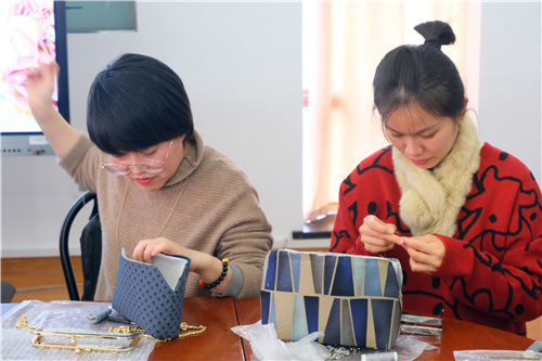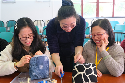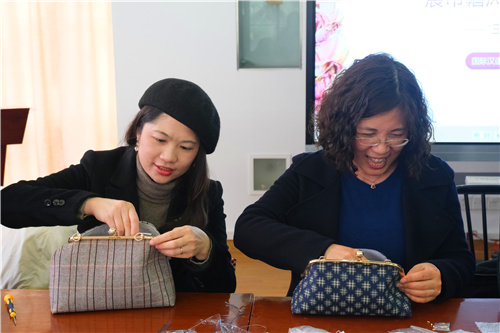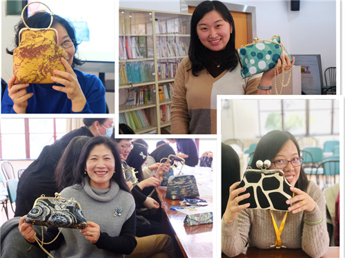 本次活动邀请了经验丰富的手工老师介绍口金包制作工艺,让大家从活动中发现传统女红艺术之美。手工包制作,需要用到穿针、缝纫、塞布等一系列技法,老师都一一讲解。随后,每位教工在老师准备的材料包中挑选出各式各样的制包布和口金。在制作过程中,大家边看边学,认真领会,还不时交流心得体会。经过1个多小时的精心制作,在女教工们的巧手摆弄下,一只只做工精美的古典、现代、田园、民族等不同风格的手工绣包就展现在了大家眼前。