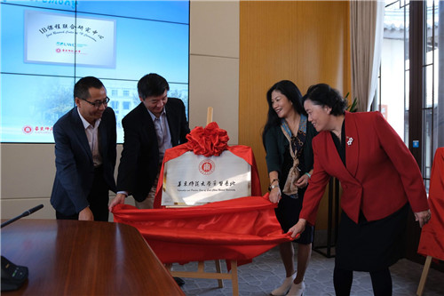 上图左起为:张宁江(常熟高新区党工委委员,管委会副主任),王颐(中国常熟世界联合学院的联合创办人及董事会副主席),黄美旭(红桃视频 党委书记,红桃视频 国际教育中心主任),李萍(中国常熟世界联合学院副校长、中国文化项目总监及虞山书院院长)