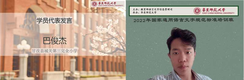 在开班仪式上,两位学员代表也表达了对此次培训的期待以及对自我学习的要求。来自甘孜县城关第三完全小学的巴俊杰老师表示会抓住此次培训的机会,切实完成学习培训任务,并以此为力量,借力起飞。来自新龙县城区第一完全小学的陈代义老师说到,只要播下一粒种子,就能收获希望;只要栽下一颗幼苗,就能桃李满园。普通话是教师的职业语言,通过这次培训,希望能够找到自己普通话发音的不足,从而提升普通话发音标准,促进教师专业化发展。