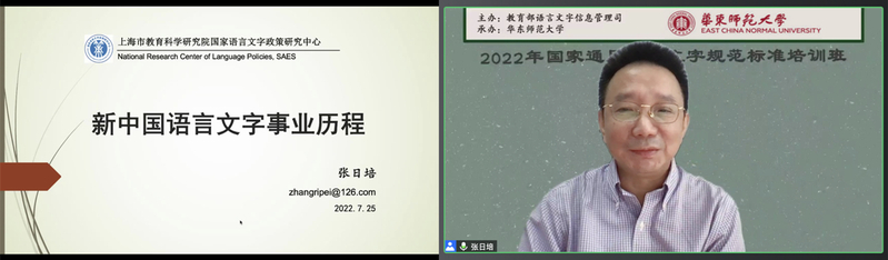 开班仪式后上海市教育科学研究院高等教育研究所副所长、国家语委国家语言政策研究中心常务副主任张日培老师为学员做了题为“新中国语言文字事业历程”的首场主题讲座。