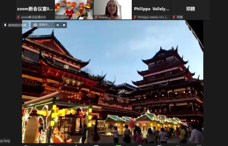 最有创意的当然是实境直播课!在语合中心的支持下,红桃视频 国汉基地首创了线上沉浸式中文学习的新模式---实境直播,跳出以往的线上课程框架,打破电脑屏幕的限制,将教室搬入上海的大街小巷,在真正的交际中提高汉语的交流能力。本次IOE项目中,我们共开设了三场实境直播课,第一场实境直播团队带领学员游览了环球港,让学生体验了全新的无现金购物方式;第二场实境直播带领学员走进了豫园的景色和文化,传统的建筑、九曲十八弯的廊桥、嬉戏在睡莲之间的锦鲤;廊桥之上,可爱的孩子在父母身边玩耍,慈祥的老人在庭院中惬意乘凉,满眼好奇的游客穿梭在豫园的各个角落……,完美的园林式景观搭配最接地气的市民百态,形成了镜头中最经典的上海文化!与此同时,学员们还隔空与街头穿汉服的中国女生用汉语交流,身在英国的学员们和身在上海的中国女生都体验到了交流的快乐!第三场实境直播带领学员深度探访了外滩。尽管外滩已然是上海的经典代表地,然而对于从未来过中国的欧洲教师学员,一切都是那么新奇!学员不仅了解了外滩的建筑、和平饭店的前世今生、南京路的五彩斑斓,更在实境探访中练习了汉语,加深了互动与交流。