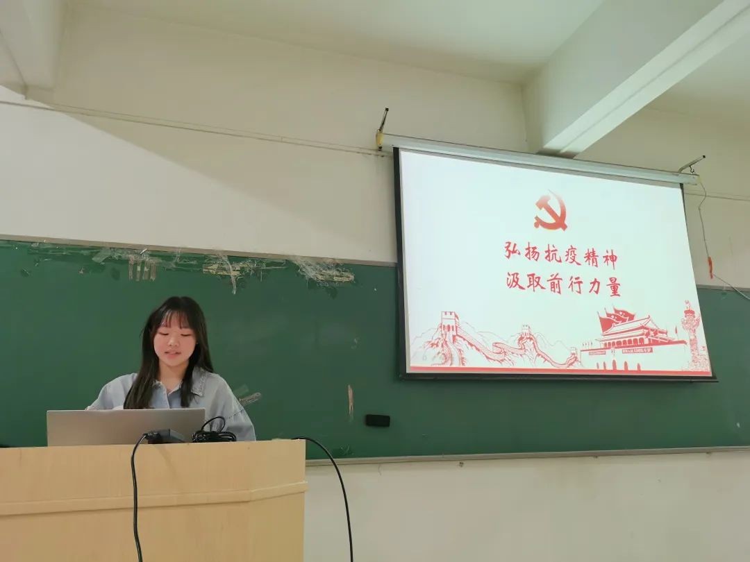 小组成员从四个方面进行了分享:党对疫情的态度、党员在疫情中的贡献、校园疫情我们是如何做的、我们仍要如何做。