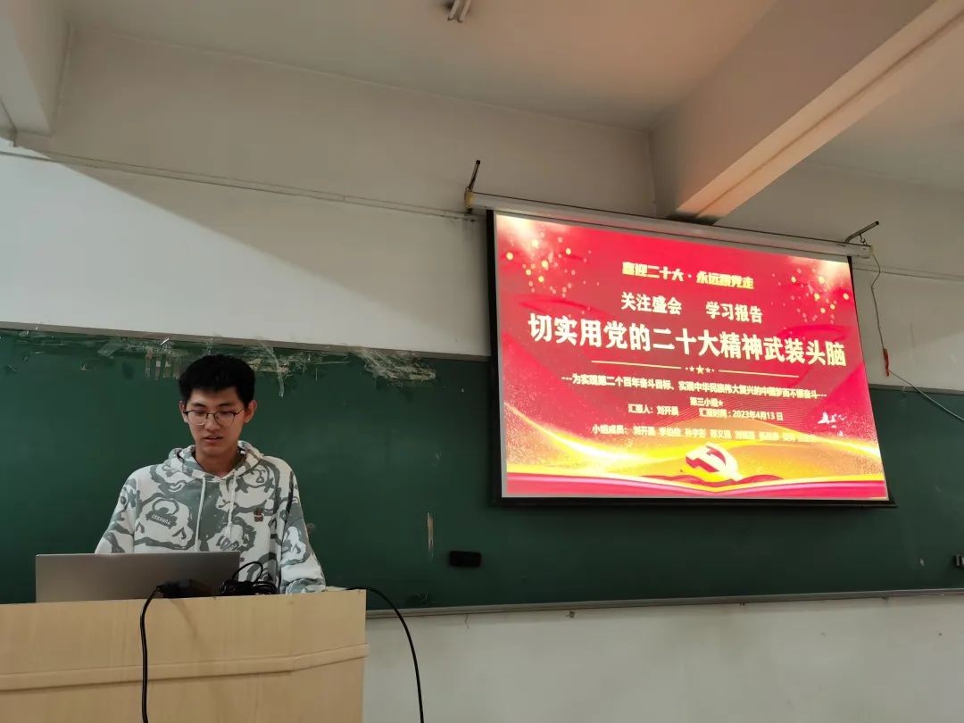 九组同学分享结束后,胡晗萌老师与同学们分享了自己关于这些时事的看法:去年学校发生了疫情,是老师们、同学们和学校共同努力克服了种种困难,我们要永远记得这段时间,在今后要相信老师和学校是始终和我们在一起的;二十大是我国发展的一个关键点,要学习好二十大报告,结合自己所学的专业,为国家的建设和发展更好地做出贡献。