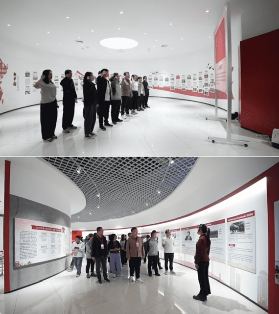 参观的重要一站是中国梦展馆。展馆内,丰富的历史图片、珍贵的文物资料,全方位、多角度地展示了中华民族追求伟大复兴的奋斗历程。在展馆中,学员代表整齐列队,怀着崇敬且庄重的心情,在鲜红的党旗前庄严宣誓。“我志愿加入中国共产党,拥护党的纲领,遵守党的章程……”铿锵有力的誓言在展馆内回荡,一字一句都饱含着学员们对党的忠诚与信仰。