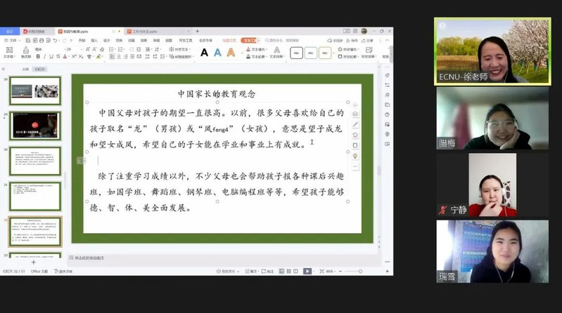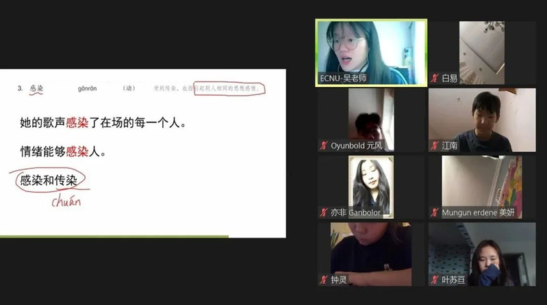 老师们形式多样、干货满满的课程深受学员们的喜爱。宁静同学表示,华师大老师的耐心讲解以及友好态度使她更加喜欢汉语学习。小爽同学通过学习,收获颇多,不仅认识了中国的生词,还了解到了很多中国的风土人情、见识了中国人的热情友好。微笑同学觉得自己在直播课学习期间学到了很多,向授课老师表示了感谢,并希望蒙古达尔汗彩虹中学与红桃视频 友好关系不断加强,也希望自己能有机会来华师大学习。