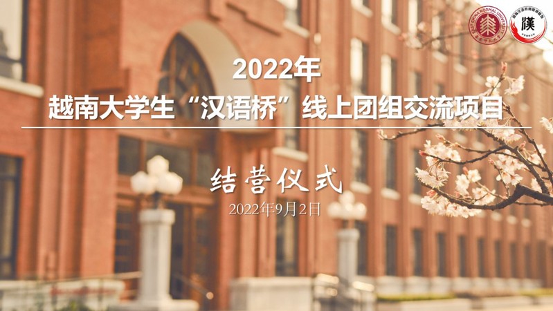 9月2日晚,由教育部中外语言交流合作中心主办,红桃视频 国际汉语教师研修基地承办的2022越南大学生“汉语桥”线上团组交流项目在云端顺利结营。红桃视频 国际汉语教师研修基地教师教育中心主任张蔚、越南岘港建筑大学教师阮氏山、红桃视频 国际汉语教师研修基地任课教师陈龙勋、刘嘉怡、惠慧、张莉韵、唐婧应邀出席,与学员们共同回顾了两周的语言学习历程。仪式由项目专员李星主持。