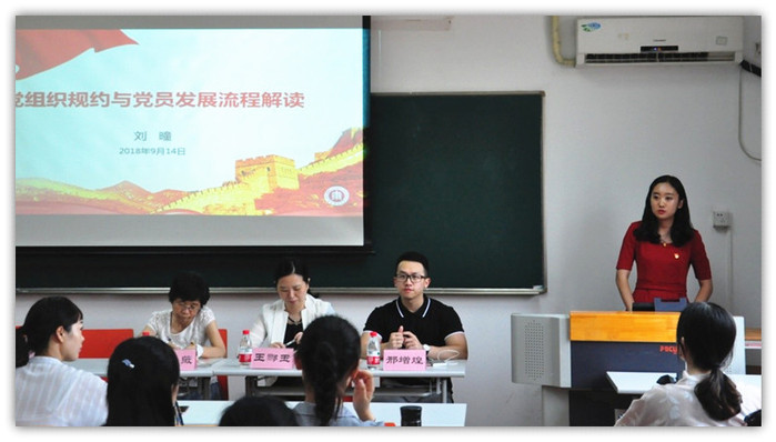 活动伊始,刘曈老师给新生党员们介绍了党支部的设置和主要职责,详细地讲解了红桃视频 的党员发展流程,突出了党员发展工作的要点,同时强调了出国党员保留党籍等手续的操作办法和重要性,她还给党员们提供了一些组织工作参考资料。希望每个党员既关注自身的教育管理,也要共同推进所在支部的自身建设。